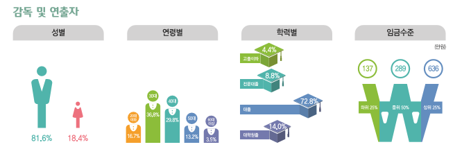 종합하면, 기존의 방송사 중심의 연출자 및 영화감독, 연극연출자의 고용은 크게 증가하지 않는 반면, 외주제작사를 중심으로 VJ형태의 연출자들이 늘고, 유튜브 같은 인터넷 영상 유통 채널에서 활동하는 연출자들이 늘 것으로 전망된다.