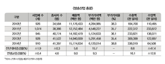 방송과 통신이 융합되면서 케이블방송, 인터넷방송, IPTV 등 다매체·다채널화로 방송환경이 재편되면서 시장이 확대되었다. 또한 지상파와 종합편성채널이 경쟁적 구조를 갖추면서 제작 방송프로그램 수가 늘어나고, 드라마와 예능 프로그램이 꾸준히 해외로 수출되는 점은 방송PD의 고용에 긍정적인 영향을 미치고 있다. 다만, 한국콘텐츠진흥원의 「2015 콘텐츠산업통계」에 따르면, 방송산업의 매출액과 부가가치액, 수출액은 증가하는 반면, 사업체 수와 종사자 수가 증감을 반복하며 정체하고 있다. 세계 경기 침체의 장기화에 따라 광고매출에 영향을 많이 받는 방송시장이 타격을 입고, 지상파방송과 유선방송의 매출이 다소 감소하는 점은 방송PD의 고용에 부정적인 영향을 미칠 것으로 보인다.
