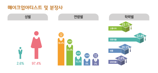 ▲ 관련 학과 : 특성화고등학교의 미용과, 전문대학 및 대학교의 메이크업아트과, 뷰티아트과, 뷰티케어과, 피부미용과, 미용과 등