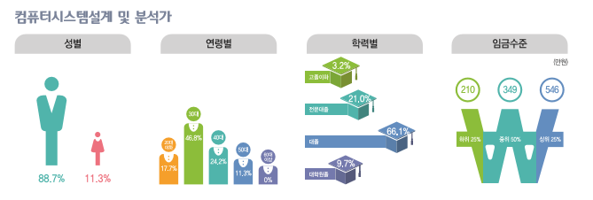 통계청의 전국사업체조사 자료에 의하면, 2014년 기준으로 컴퓨터시스템설계 및 분석가가 일할 것으로 예상되는 컴퓨터시스템 통합 자문 및 구축 서비스업 사업체는 1,693개소로 2008년 686개소에 비해 146.8% 증가하였고, 관련 산업의 종사자는 2008년 30,625명에서 2014년 61,189명으로 99.8% 정도 증가한 것으로 나타났다.